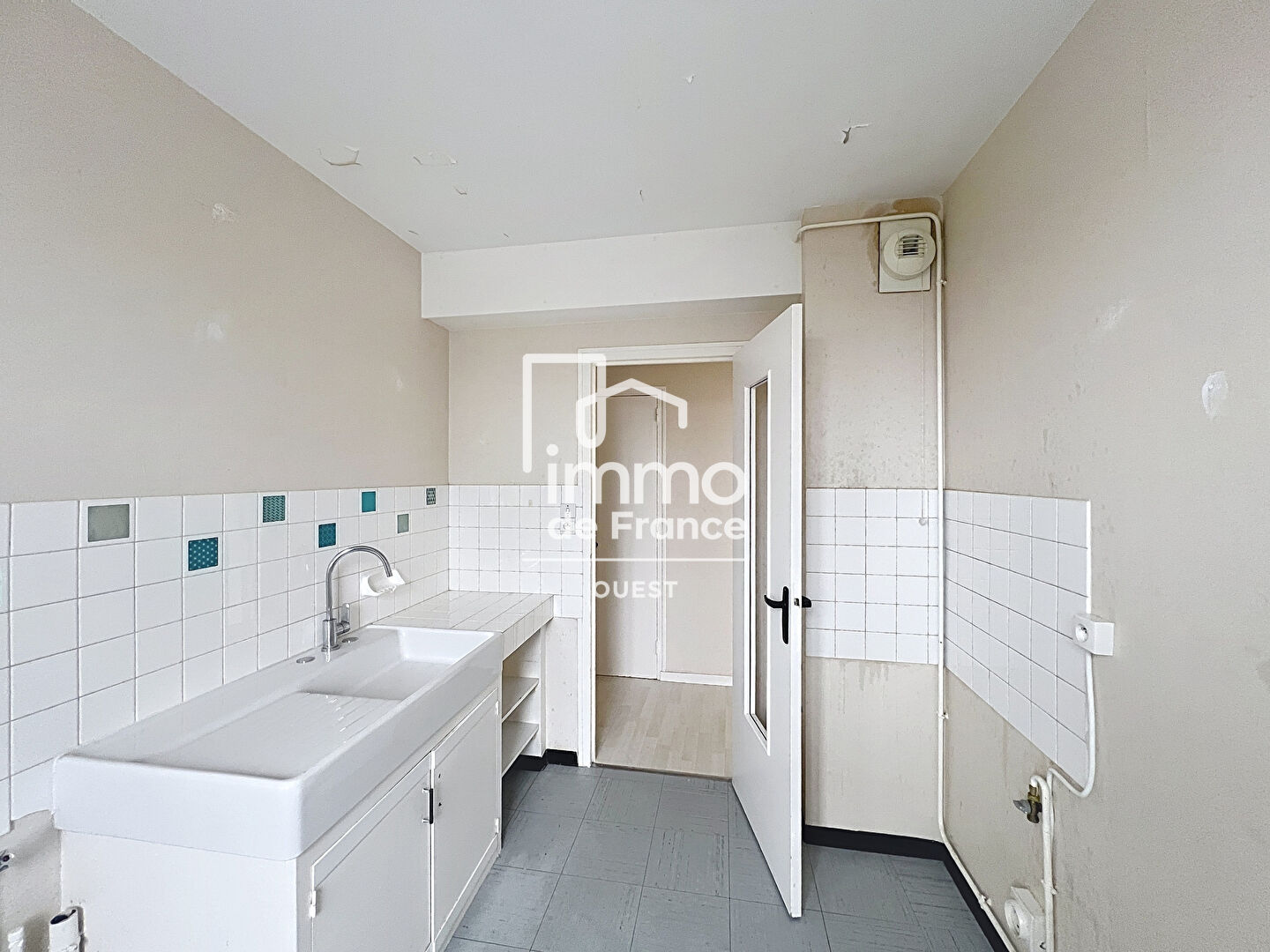 L1252, quartier de l’hôpital, IMMO DE FRANCE OUEST vous propose un appartement 2 pièces de 45 m², offrant une entrée avec placard, un salon-séjour exposé plein ouest, une cuisine, une buanderie, une chambre avec placard, une salle d’eau et WC.